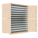 Die zweitürige Bildertruhe bietet durch 20 weiße Auszugböden Stauraum für Papierformate bis 100x70 cm. Die Auszugböden unserer Schränke sind mit einer Auszugsicherung versehen.
